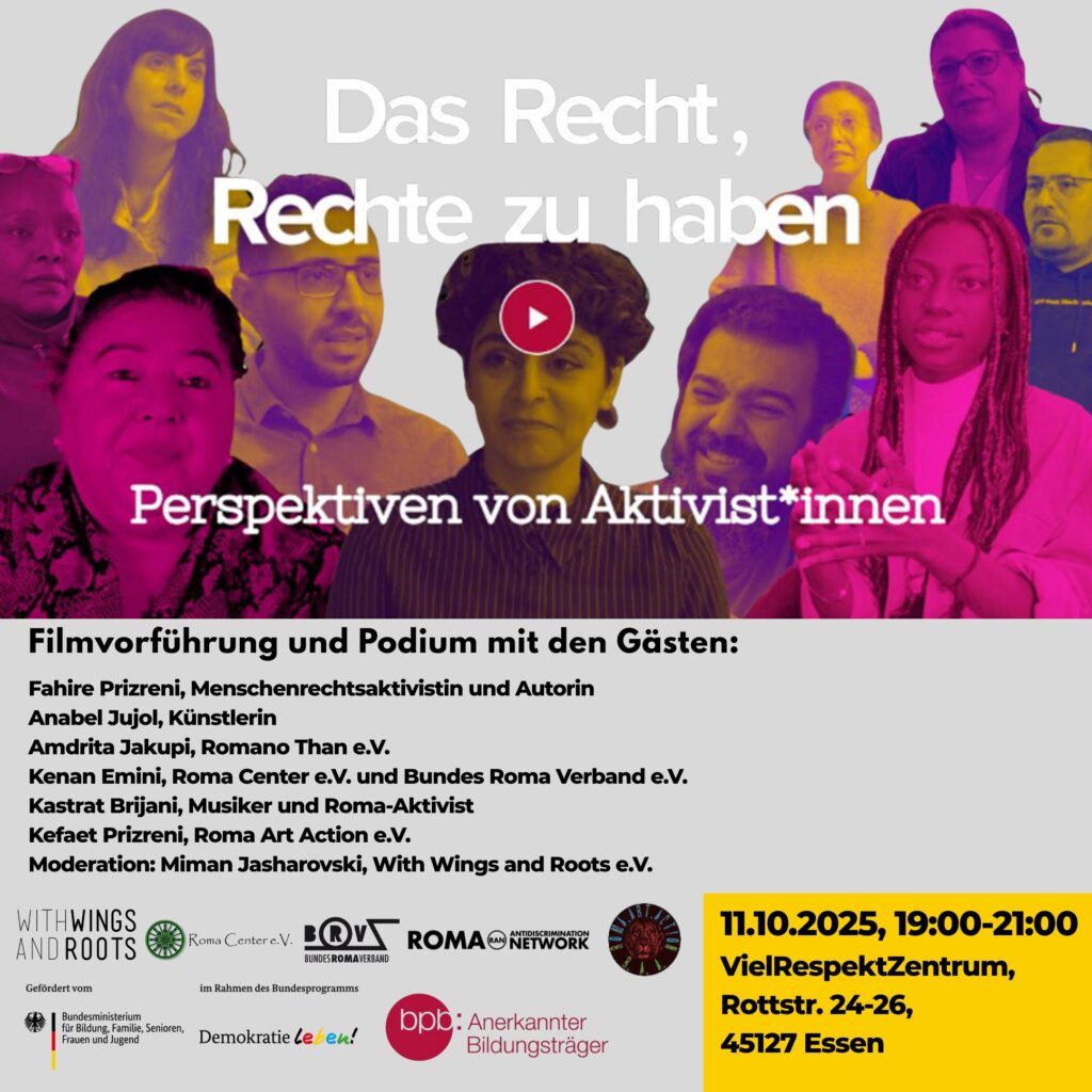 Am 11. Oktober 2025 laden wir in Essen zu einer Filmvorführung mit anschließender Podiumsdiskussion ein. Gezeigt wird der 30-minütige Film Das Recht, Rechte zu haben. Perspektiven von Aktivist:innen, der im Rahmen der Kampagne „Pass(t) uns allen“ entstanden ist, … Lies mehr