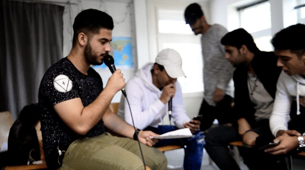 Die Teilnehmenden haben zusammen einen wunderbaren Text geschrieben, in dem sie ihre Erfahrungen mit Flucht, ihre Hoffnungen auf eine bessere Zukunft und ihre Gefühle zu den erlebten Ablehnungen reflektieren: