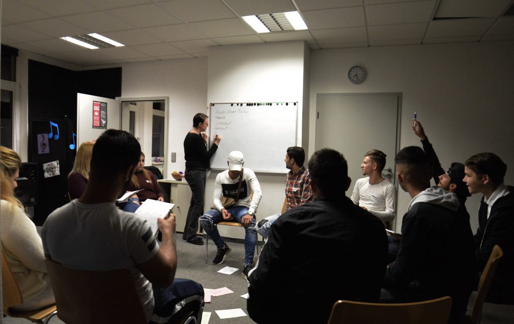 Breiten Raum nahm dabei auch die Angst vor Abschiebung und der Wunsch nach sicherem Aufenthalt ein. Einig waren sich die Jugendlichen, dass Ausbildung dafür eine zentrale Rolle spielt. Jedoch: Wie willst du ohne Duldung eine Ausbildung bekommen? In ihrem Lied beschreiben sie die groteske Situation, ohne Duldung keinen Job zu bekommen und ohne Job keine Duldung treffend: „Ich bin gefangen in einem Teufelskreis“.