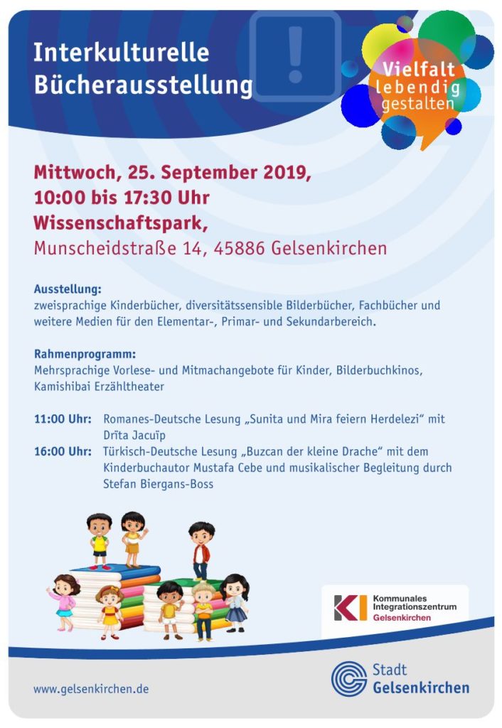 Bei der interkulturellen Bücherausstellung im Wissenschaftspark Gelsenkirchen liest Drita Jakupi aus dem zweisprachigen Kinderbuch des Roma Centers.